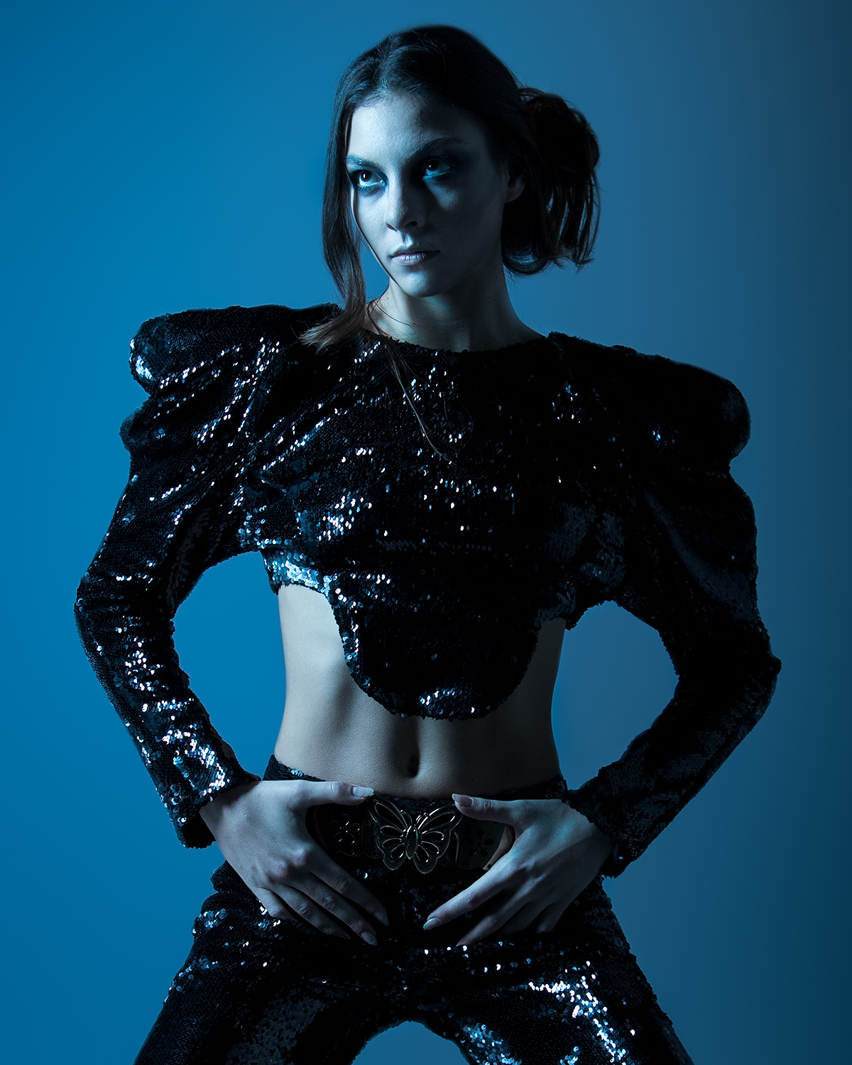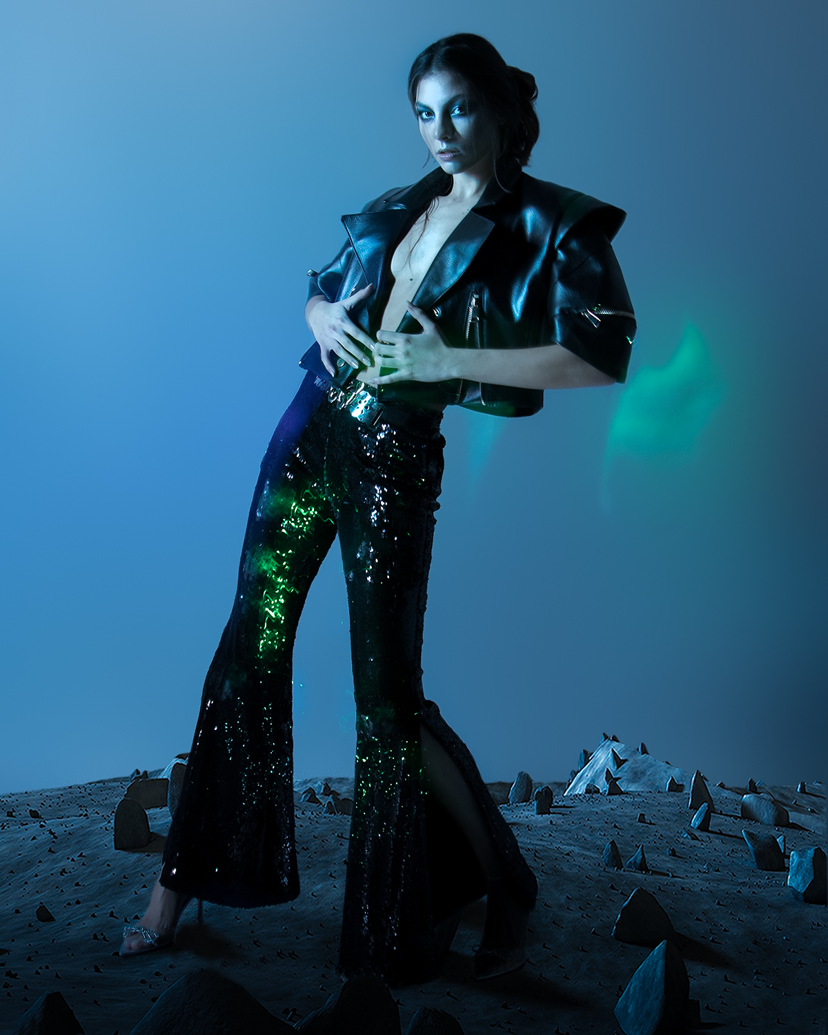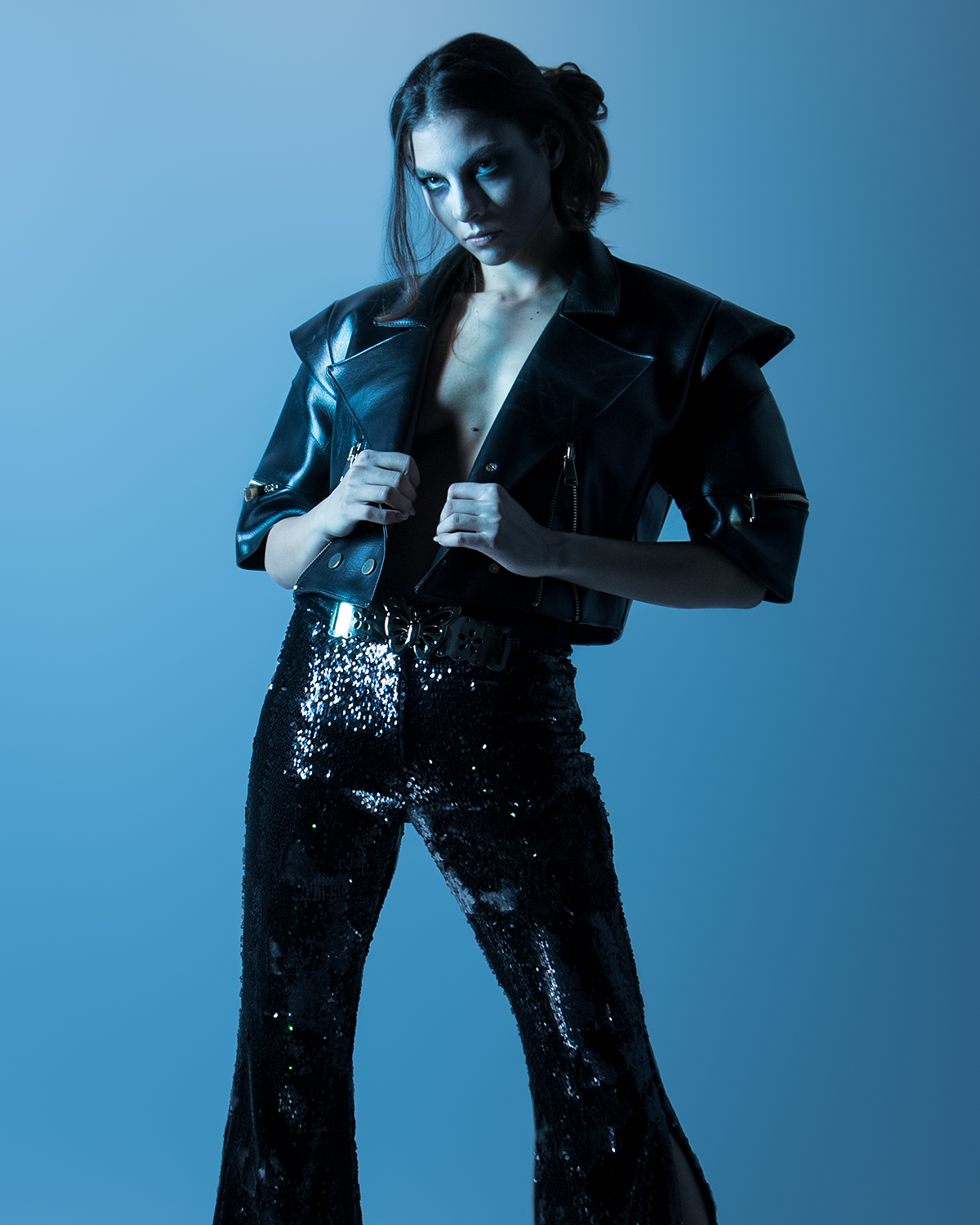 For a holiday collection, brand Chany Maria is bringing in her already recognizable silhouettes, sequined, black materials.