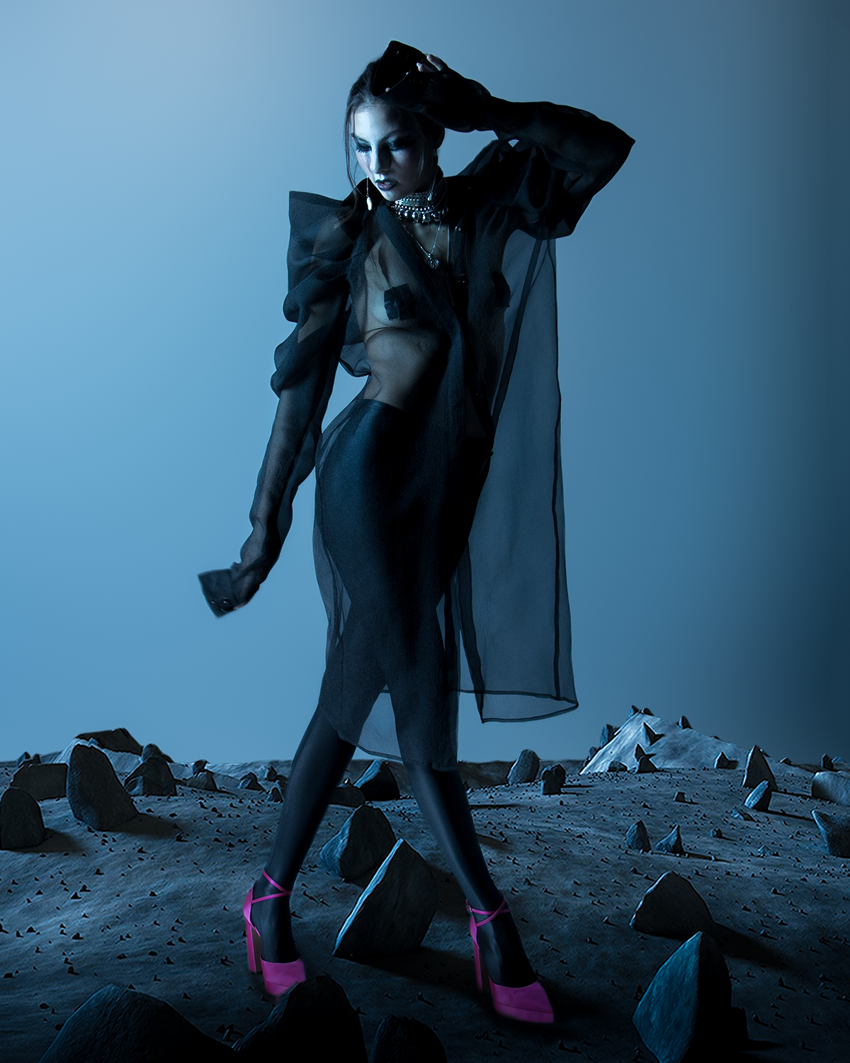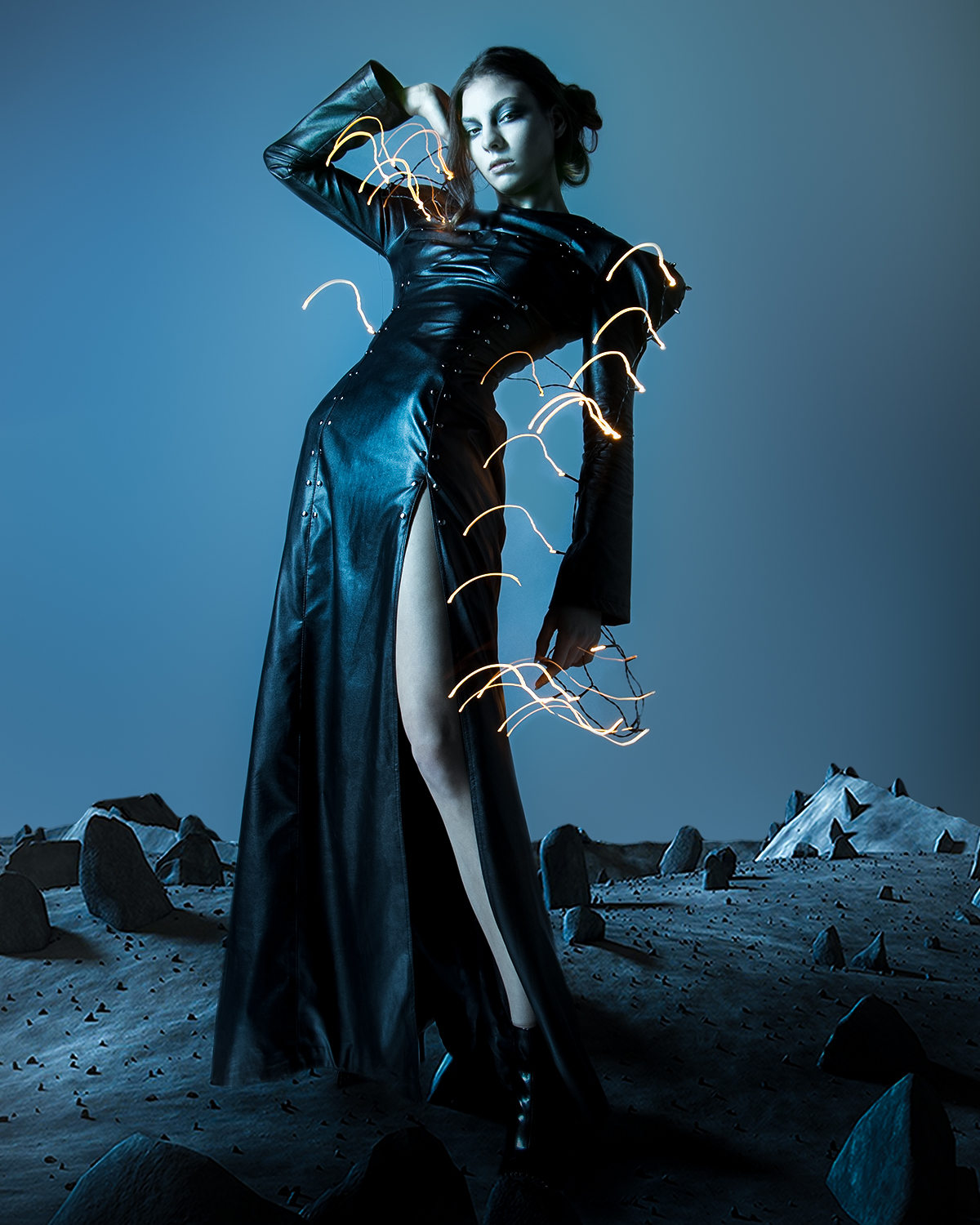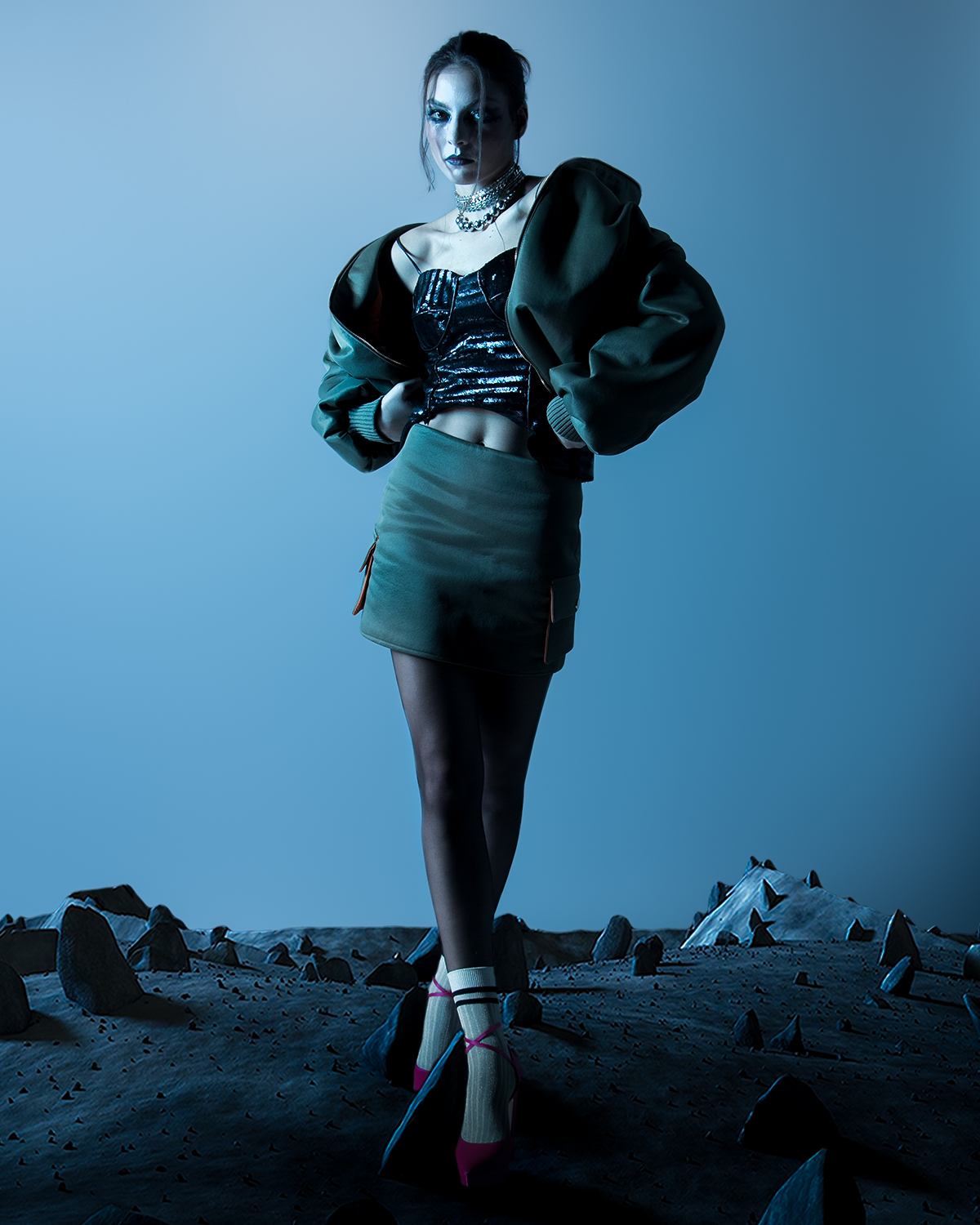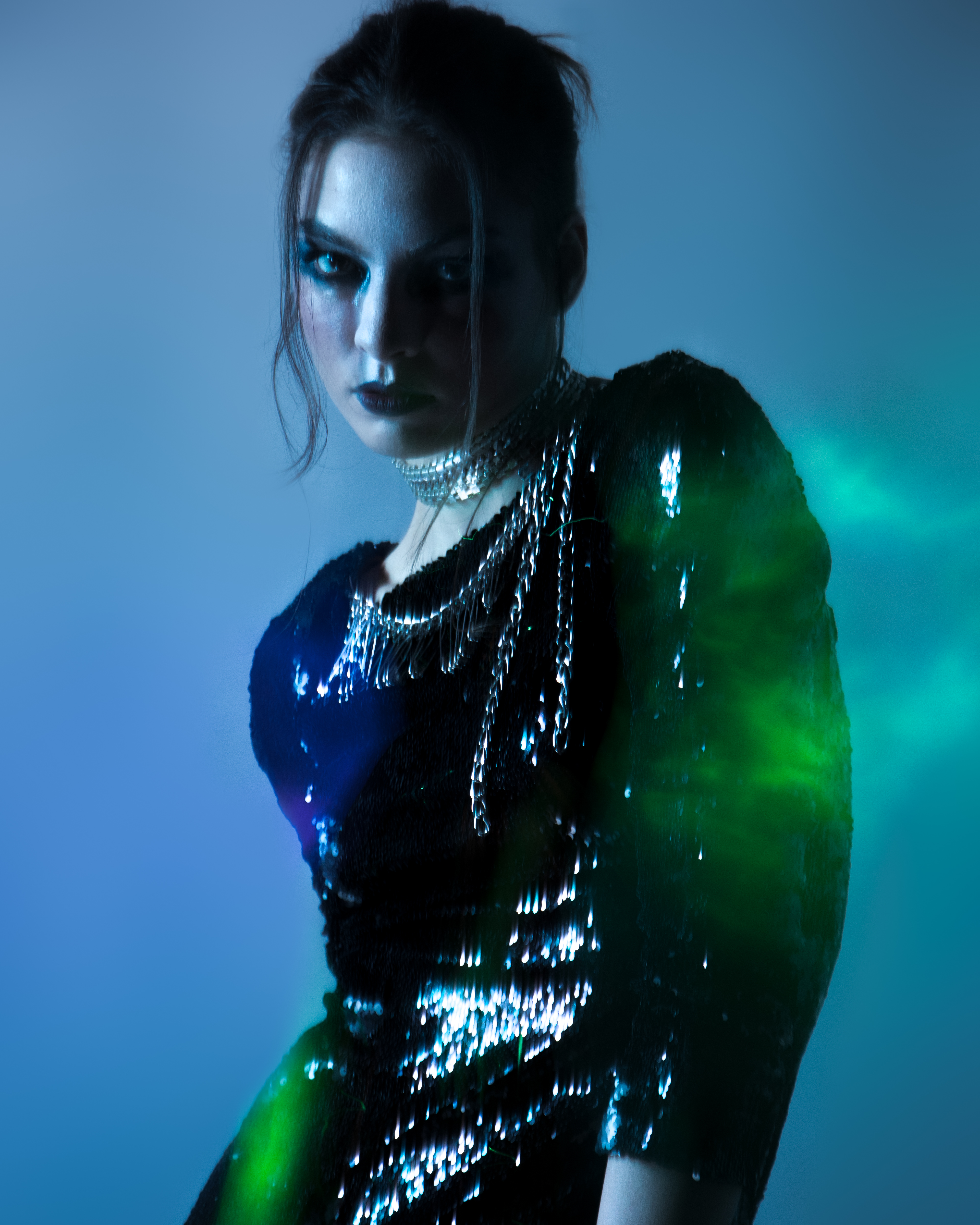 For a holiday collection, brand Chany Maria is bringing in her already recognizable silhouettes, sequined, black materials.